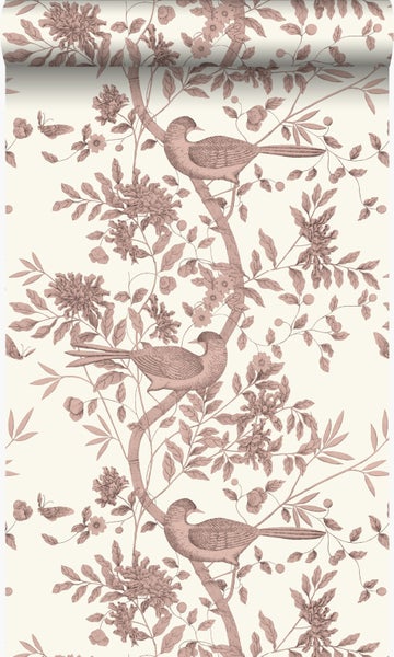 Origin Tapete Vogelgravur Elfenbeinweiß und Kupferbraun 53 cm x 10.05 m