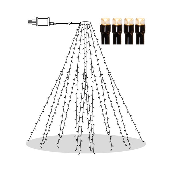 Outdoor Baummantel-Lichterkette ,Shiny Warm White', 8 x 2m lange Licht-Stränge, 360 warmweiße LEDs Überwurf-Lichterkette mit zahlreichen, warmweißen LEDs für eine gleichmäßige Verteilung der einzelnen Lichter am Weihnachtsbaum Entdecke die vielseitige Baummantel-Lichterkette ,Shiny Warm White' mit 360 warmweißen LEDs, perfekt für die stimmungsvolle Beleuchtung von Innen- und Außenbereichen. Diese stromnetzbetriebene Überwurflichterkette verleiht dem Outdoor-Weihnachtsbaum eine gleichmäßige Beleuchtung und sorgt für eine ästhetische Beleuchtungsmöglichkeit von Bäumen. Ideal für Gärten, Balkone oder gemütliche Innenräume.