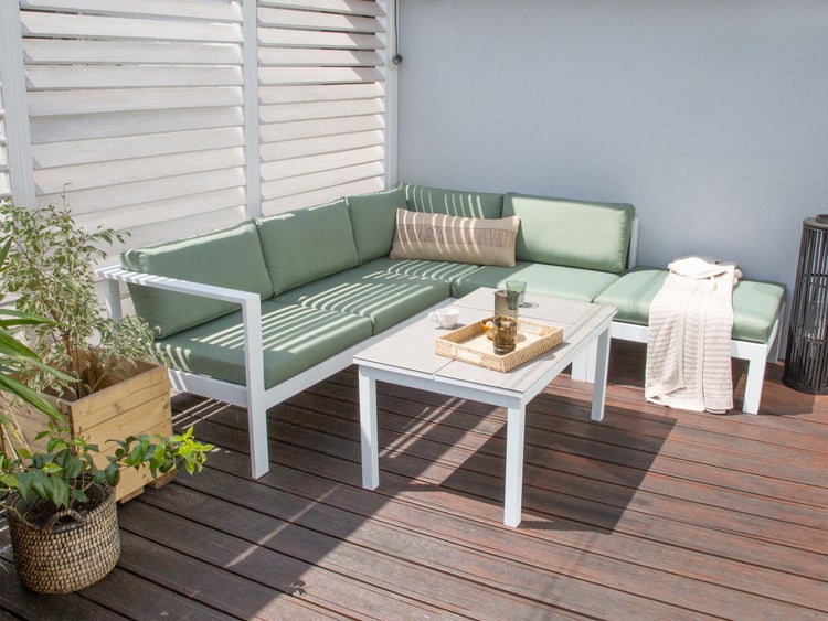 Zehn grüne Kissenbezüge für Lounge Sets. Verschönern Sie Ihr Garten-Ecksofa mit diesen grünen Kissenhüllen. Die Auflagenbezüge bestehen aus einem wasserabweisenden und UV-schützenden Material, das Ihre Sitz- und Rückenkissen nicht nur bei Regenschauern oder verschütteten Flüssigkeiten länger trocken hält, sondern sie auch Ihre Farbe bei sonnigem Wetter bewahren lässt. Die integrierten Reißverschlüsse erleichtern die Pflege des Sets und machen sie zur perfekten Ergänzung für Ihre Gartenmöbel. Details: Typ Kissenbezug. Farbe: Grün. Material: Stoff. Material: Olefin. Zusammenstellung: 100% Kunststoff. Form: Quadratisch. Muster: Ohne Muster. Geeignet für: Gartenmöbel. Abmessungen: Tiefe: 69/77/35/35 cm. Breite: 69/77/70/56 cm. Höhe: 8/8/9/9 cm. Gewicht: 3 kg. .Sie kaufen: 1 x Kissenbezugset, Nicht im Lieferumfang enthalten: Innenkissen. Produktvorteile: Pflegeleichtes und strapazierfähiges Material, UV-Beständigkeit Klasse 7 (ISO 105-B02), Wasserdicht dank hochwertiger Materialien, Einfaches Über- und Abziehen dank Reißverschluss. Montage: Benötigt keine Montage. Beständigkeit: UV-beständig. Beständigkeit Text: Dieser Artikel ist aus solchen Stoffen gefertigt, die im Vergleich zu Standardgeweben über eine stärkere UV-Beständigkeit verfügen und somit eine höhere Farbbeständigkeit aufweisen. Trotzdem sollte man das Produkt bei Nichtgebrauch abgedeckt aufbewahren, um seine Lebensdauer zu verlängern. Pflegeanleitung: Olefin: 1.Nur von Hand, mit kaltem Wasser und milden Reinigungsmitteln auf der rechten Seite mit geschlossenem Reißverschluss waschen. 2.Bitte nicht im Trockner trocknen und auch nicht bügeln, 3.Wenn die Textilien nicht verwendet werden, sollten sie an einem sauberen und trockenen Ort vor ungünstigen Witterungseinflüssen geschützt werden.