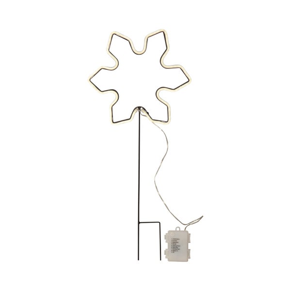 Outdoor Stableuchte ,Neonsnowflake' mit weihnachtlicher Schneeflocke, Batteriebetrieb, Timer, weißes Licht, H 60cm