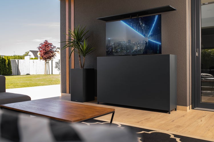 Outdoor TV Lift Schrank-Anthrazit - 1590 x 341 x 1005 mm (Länge x Breite x Höhe) - Schrank mit Hebemechanismus zur Aufbewahrung von Fernsehgeräten im Freien - Hebemechanismus mit Fernbedienung