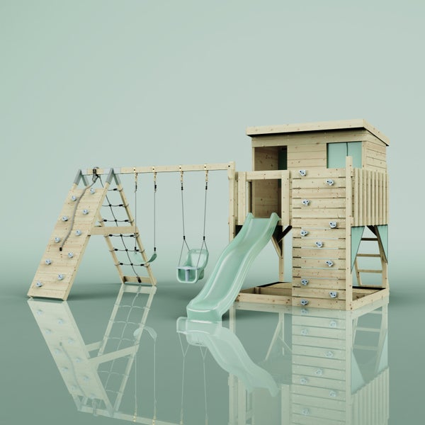 OutdoorToys Spielturm Aksel aus Holz in Grün Babyschaukel