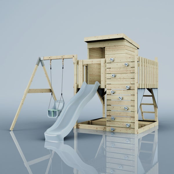 OutdoorToys Spielturm Alma aus Holz in Blau Babyschaukel