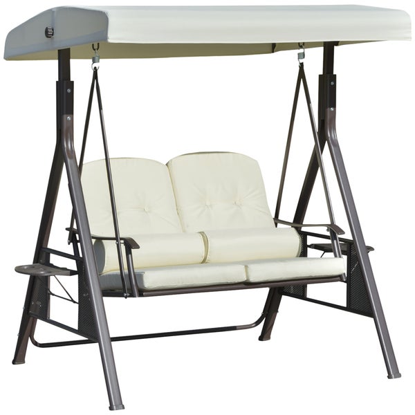 Outsunny 2-Sitzer Hollywoodschaukel, Gartenschaukel mit Sonnendach, 162 x 118 x 173 cm, Metall, Polyester, Beige