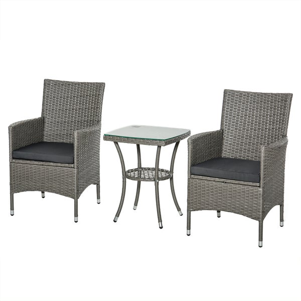 Outsunny 3-tlg. Gartenmöbel-Set, B60 x T58,5 x H89,5 cm, Metall, PE-Rattan, Polyester, Schaumstoff, grau