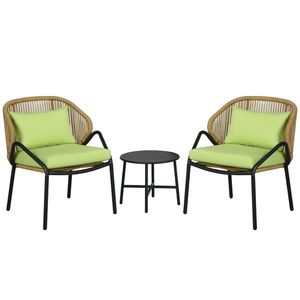 Outsunny 3 tlg. Ratten Balkonmöbel-Set, 65L x 60B x 77H cm, PE Rattan, Polyester, grün