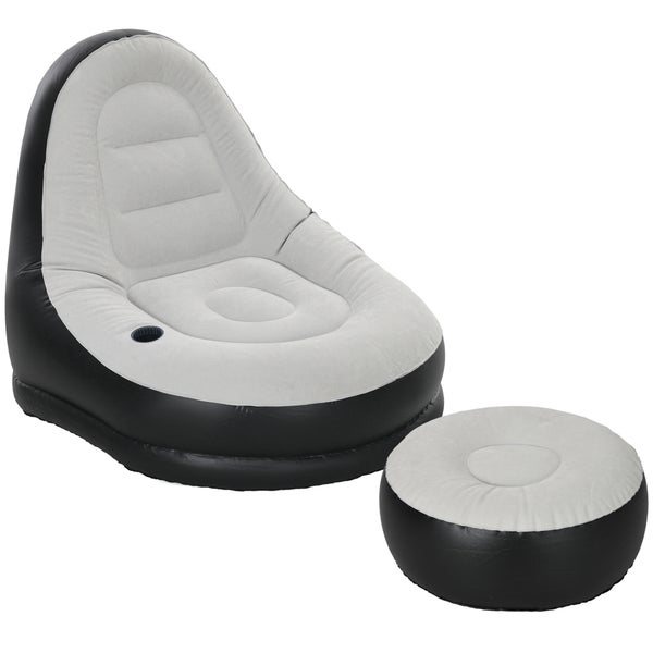 Outsunny Aufblasbares Sofa, Aufblasbarer Sessel mit Fußhocker Luftsofa mit Becherhalter, für Camping, Zuhause, Hellgrau, 125 x 100 x 87 cm