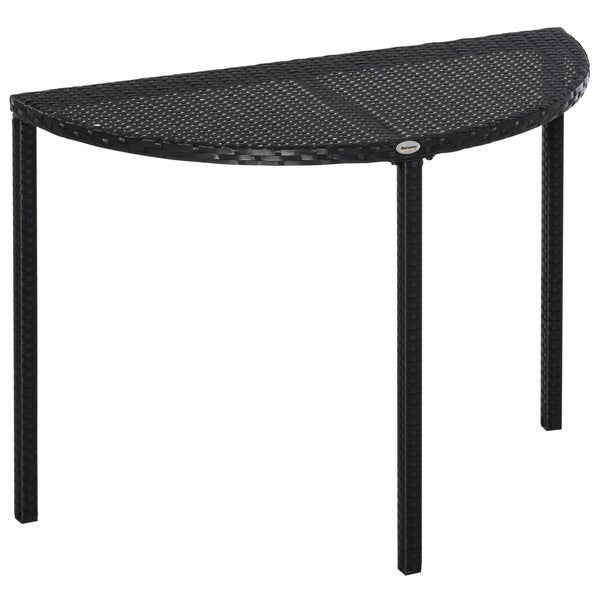 Outsunny Balkontisch Garten Beistelltisch Tisch Gartenmöbel halbrund Polyrattan Metall Schwarz 100 x 50 x 74 cm