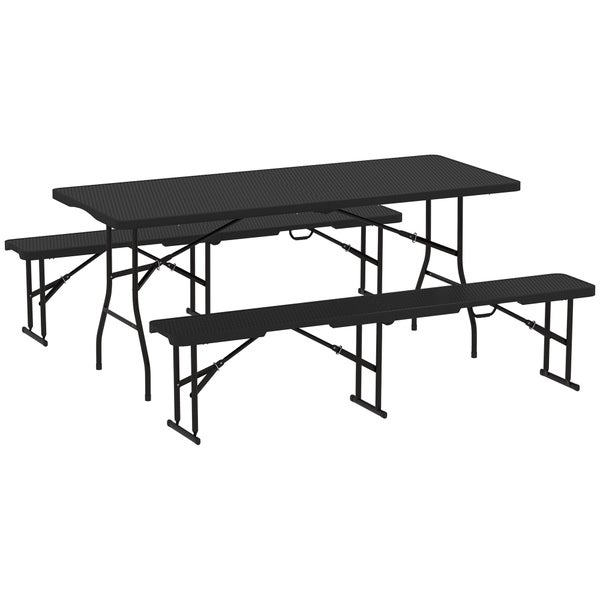 Outsunny Bierzeltgarnitur 3-teiliges Set Klappbar Campingtisch, 2 Bierbank mit Tragegriff, Rattanoptik, Biertischgarnitur Festzeltgarnitur für Balkon, Partyzelt, Garten 180 x 74 x 74 cm