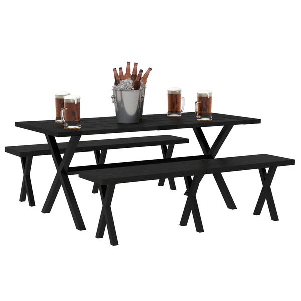 ● Die x-förmigen Beine gewährleisten hohe Stabilität von Tisch und Bank