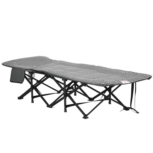 Outsunny Feldbett, mit Becherhalter, Tasche, bis 120 kg, für Balkon, Schwimmbad, 68 x 186 x 48cm, Stahl, PVC, PP, Schwarz