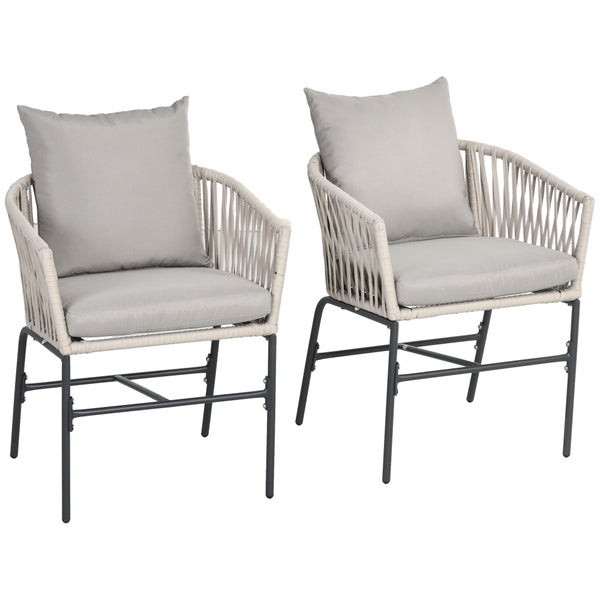 Outsunny Gartenstühle 2er-Set, mit Kissen, im Boho-Stil, 57 x 60 x 71 cm, Stahl, Polyeste, Beige