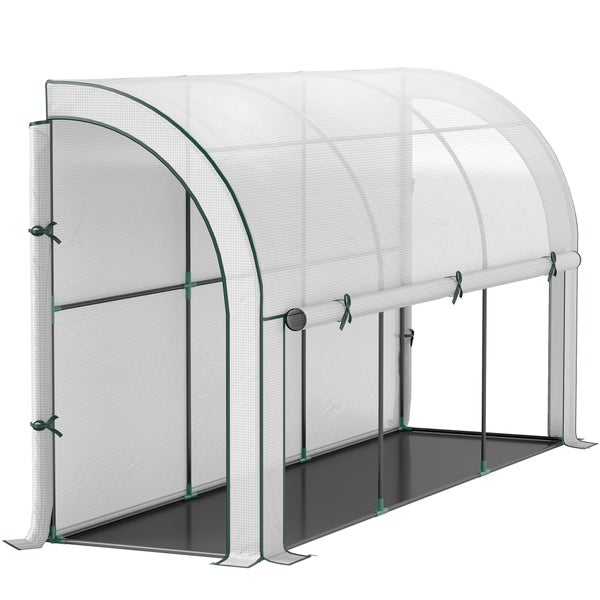 Outsunny Gewächshaus mit Rolltür, winterfest Foliengewächshaus aus Stahl, Treibhaus für Balkon, Garten, Tomatenhaus mit UV schutz 300x80x157cm Tomatengewächshaus für Gemüse Blumen Pflanzen Weiß