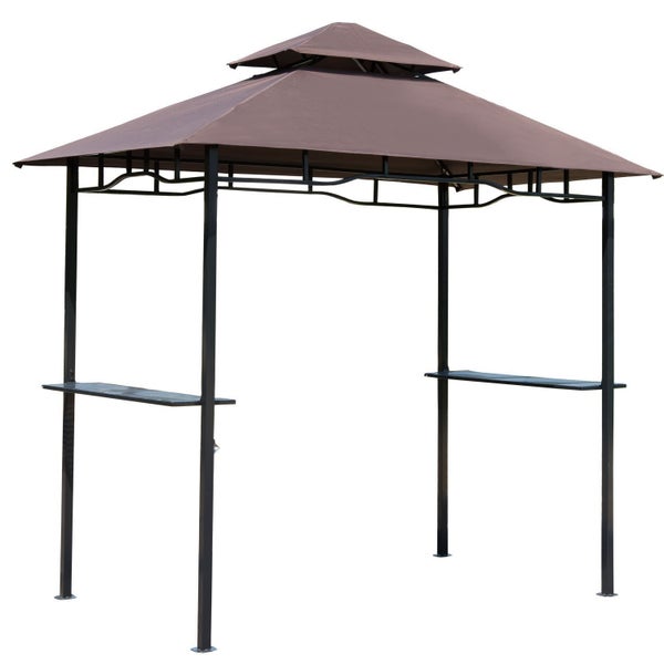 Outsunny Grillpavillon Gartenzelt Grill Pavillon Balkonpavillon mit Ablagen Flammhemmendes Doppeldach Kaffeebraun 245 x 148 x 252 cm