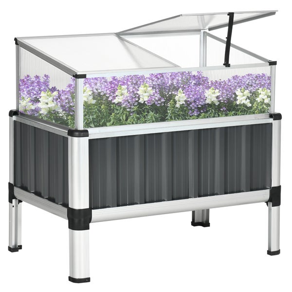 Outsunny Hochbeet mit Gewächshaus, Pflanzenhaus mit Fenster, 80 x 50 x 74 cmverzinkter Stahl, Dunkelgrau