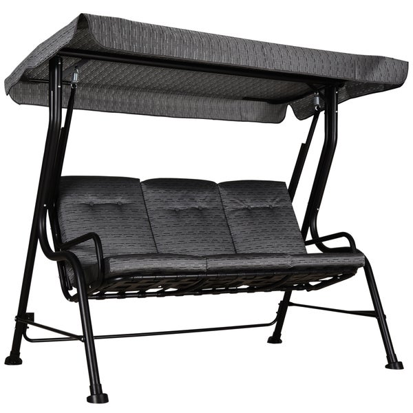 Outsunny Hollywoodschaukel, 3-Sitzer Gartenschaukel, Verstellbares Sonnendach, Texteline Grau 200 x 120 x 170 cm