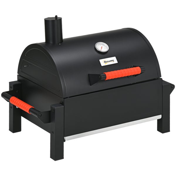 Outsunny Holzkohlgrill, Tischgrill mit Grillrost, Deckel für Picknick, Verzinkter Stahl, Schwarz, 68,5 x 50 x 54 cm