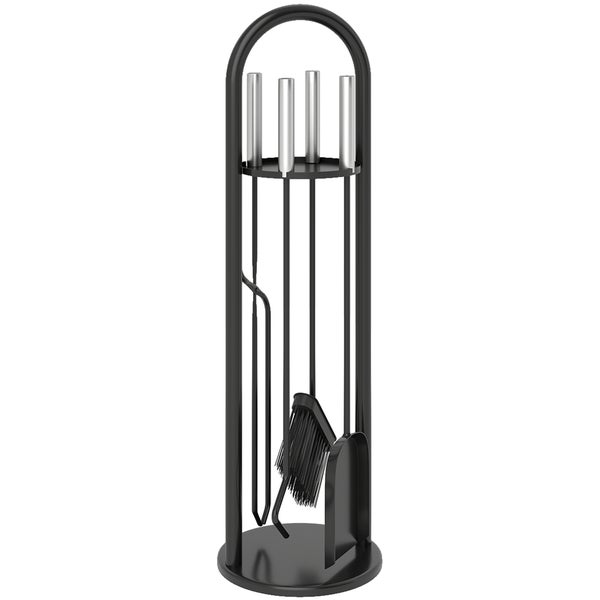 Beleben Sie Ihren Kamin mit dem Outsunny Schürhaken Set, ideal für drinnen und draußen. Das Kaminzubehör Set umfasst fünf Teile: Besen, Schaufel, Schürhaken, Zange und einen runden Ständer, alle aus Metall mit schwarzer Pulverbeschichtung. Einfache Pflege und klassisches Design des Kaminbestecks garantieren langlebigen Genuss dieser essentiellen Zubehörteile.