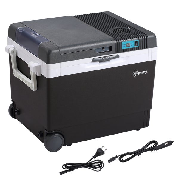 Dieser Auto-Kühlschrank mit Heizfunktion von Outsunny ist ein unverzichtbares Reisezubehör für alle Abenteurer und Reisenden da draußen! Mit einem Fassungsvermögen von 33 Litern bietet diese Box reichlich Platz für Speisen und Getränke. Neben der Kühlfunktion besitzt die Kühlbox auch eine Heizfunktion. Die Mini-Kühlschrank aus hochwertigem Material gefertigt, langlebig und dennoch leicht. Dank der praktischen Räder und Griffe kann sie bequem überallhin mitgenommen werden.