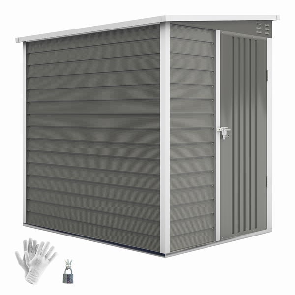 Outsunny Metall Gerätehaus 2,3m² 142x184x181cm Geräteschuppen mit Fundament Pultdach Fenster abschließbar Tür Handschuhe wetterfest Gartenhaus Outdoor Garten Schuppen für Garten Hinterhof Hellgrau