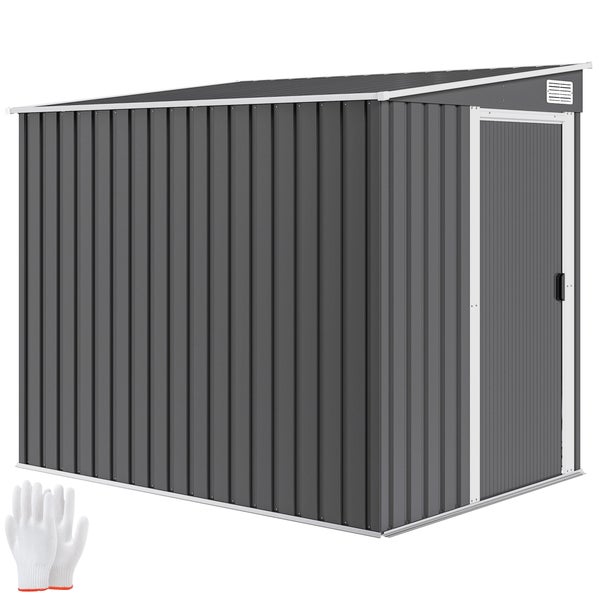 Outsunny Metall Gerätehaus 2,81m² 154x206,5x181 cm Geräteschuppen mit Pultdach Fundament Schiebetür wetterfest Gartenhaus Outdoor Garten Schuppen Schrank für Hinterhof Außenbereich Dunkelgrau