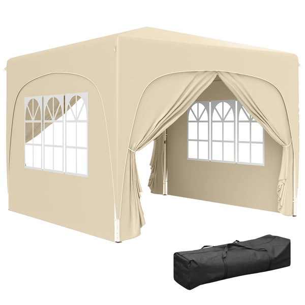 Outsunny Pavillon 3x3m, wasserabweisend Stabil Winterfest Pop-up Faltpavillon, UV Schutz 50+, Faltbar Partyzelt Gartenzelt mit 4 Seitenteilen Tasche Gartenpavillon für Camping Garten, Sand