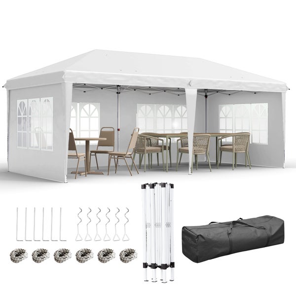 Outsunny Pavillon ca. 3x6m Wasserdicht Pop-up Faltpavillon mit UV-Schutz, Fenster, Partyzelt mit 4 Seitenwänden, Oxford Gartenpavillon inkl. Tragetasche Gartenzelt für Balkon, Terrasse, Weiß