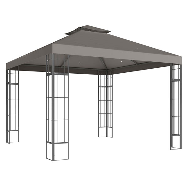 Die stabilen, pulverbeschichteten Metallsäulen des Outsunny wetterfesten Gartenpavillions bieten hervorragenden Schutz vor Witterungen und das elegante, zweistufige Dach des Pavillons verbessert die Luftzirkulation. Das Kunststoff-beschichtete Dach des Pavillons schirmt 97% der UV-Strahlen ab und sorgt für angenehm kühlen Sonnenschutz an warmen Sommertagen.