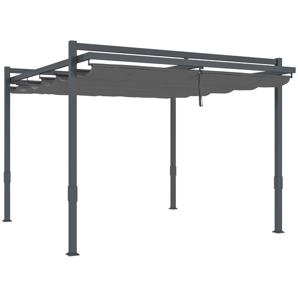 Outsunny Pergola Pavillon ca. 3,5x3m Aluminium Stabil winterfest Sonnenschutz mit verstellbares Schiebedach freistehend Gartenpavillon Terrassenüberdachung Überdachung für Garten Balkon Grau