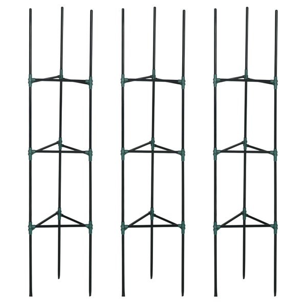 Outsunny Rankhilfe 3er-Set, Pflanzenhalter mit 3 Ebenen, Gartenpflanze Stützstangen, Rankgitter, Tomatenkäfig für Kletterpflanzen, Stahl, Grün, 38 x 38 x 182 cm