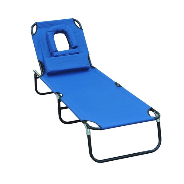 Outsunny Sonnenliege, Gartenliege mit Lesefenster, Gesichtsöffnung, L190 x B56 x H28 cm, Oxford-Stoff, Stahlrohr, Blau