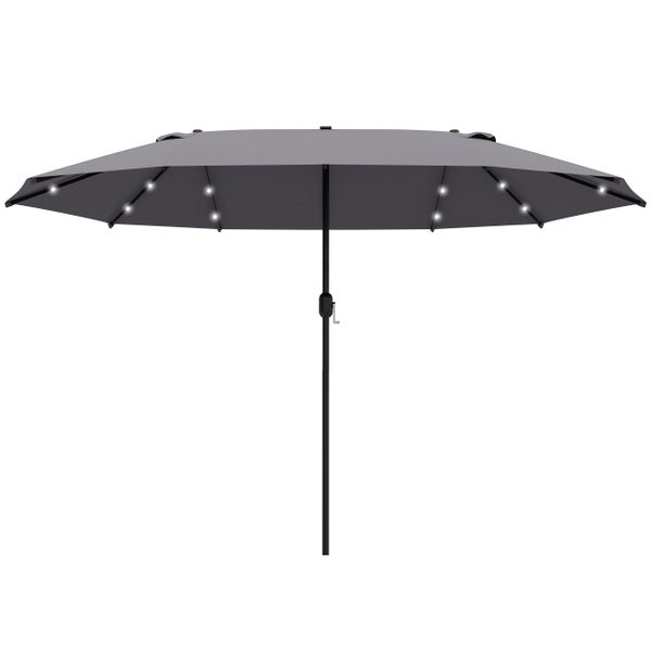 Outsunny Sonnenschirm mit LED Doppelsonnenschirm 440 x 260 cm Gartenschirm Marktschirm groß Terrassenschirm mit Handkurbel Oval Metall Dunkelgrau