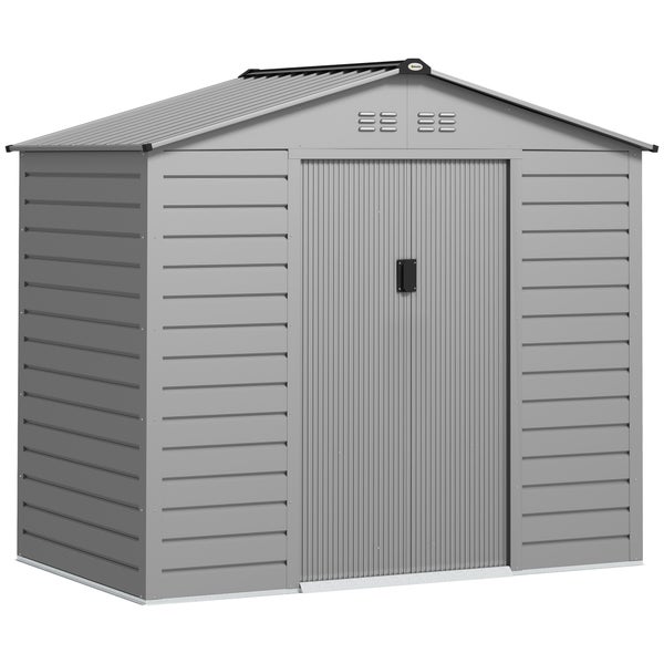 Outsunny Verzinkter Stahl Gerätehaus 2,43㎡ 213x131x192cm Einfach Montage Geräteschuppen mit Satteldach, Abschließbarer Schiebetür, wetterfest Gartenhaus, Outdoor Garten Schuppen für Außenbereich, Grau