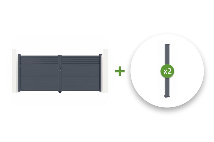 Wenn für Ihre Installation Säulen erforderlich sind, stehen Ihnen auch Aktionspakete zur Verfügung, die ein Aluminium-Schwenktor Ihrer Wahl sowie zwei Aluminiumpfosten enthalten, die an das gewählte Eingangstor angepasst sind.