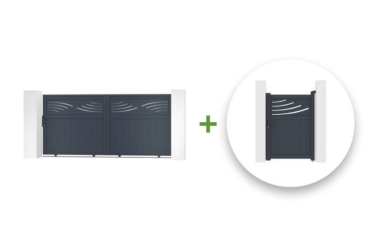 Pack Schiebetor 3 m HALTI 300C140 + Tor HALTI 100P140 Grau