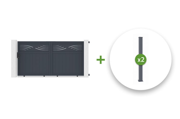 Pack Schiebetor 3m HALTI 300C160 + 2 EIFEL-Pfosten H.190cm Grau