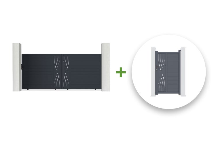 Pack Schiebetor 4 m VELETA 400C180 + Tor VELETA 100P180 Grau