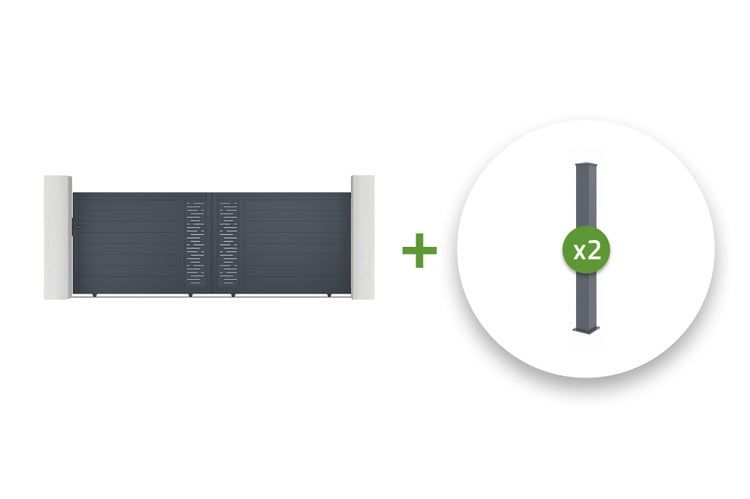 Pack Schiebetor 4m ARLBERG 400C140 + 2 EIFEL-Pfosten H.166cm Grau