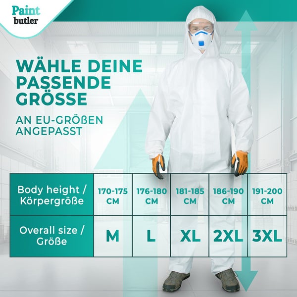 VIELSEITIGE EINSATZGEBIETE: Der PaintButler Pro ist ein Einweg-Schutzanzug sowohl für den Professionellen Einsatz bei Asbestentsorgungen, Sanierungen, Schimmelbeseitigung als auch für den Hausgebrauch für Renovierungen, Reinigungs- oder Malerarbeiten