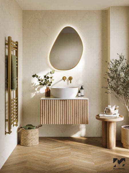 Im Inneren steckt ein Medite Exterior MDF-Kern – wasserresistent, robust und geprüft nach allen Standards (BS EN 622 Teil 5, DIN EN 335-3). Genau das, was du brauchst in Bad, Dusche oder jedem anderen Feuchtraum. Kein Aufquellen, kein Verziehen. Außen sorgt ein hochwertiges Hochdrucklaminat für den Look, der Eindruck hinterlässt – dauerhaft, pflegeleicht und stylisch.