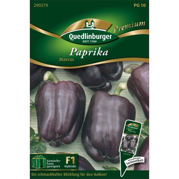 Info: Diese Paprika fällt durch seine ungewöhnliche dunkelviolette Färbung sofort ins Auge. In der fortschreitenden Reife verfärbt sich die Sorte Mavras allerdings dunkelrot. „Mavras“ setzt sicher blockige dickfleischige Früchte an, da sie frühreifend und hoch resistent ist gegenüber dem Tabakmosaikvirus (TMV) der Rassen 0, 1 und 2. Wuchshöhe ca. 60 cm. Pflege: Von Februar bis April in warmen Zimmer/ Gewächshaus in Töpfen oder Aussaatschalen, ca. 0,5 - 1 cm tief aussäen und leicht mit gesiebter Erde bedecken. Stetig feucht halten. Sterile Aussaaterde bzw. –gefäße verwenden! Das Vorquellen der Samen (ca. 24 h) in lauwarmen Wasser oder Kamillentee ist der Keimung förderlich. Klarsichtfolie über die Aussaatgefäße gespannt, hilft die Feuchtigkeit konstant zu halten, bei Kondenswasserbildung unbedingt Folie teilweise entfernen. Verwendung: Ideal für den Anbau im Kübel auf Balkon und Terrasse, sowie im Freiland. Die Früchte sind zum Frischverzehr, Konservierung, zum Füllen und Braten geeignet. Gärtnertipp: Das Ausbrechen der ersten Blüte/ Königsblüte fördert die Entwicklung weiterer Blüten und deren Früchte.