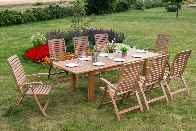 Paraiba Gartenmöbelset 9tlg. Klappsessel, Ausziehtisch 180 (220/260) x 100 cm