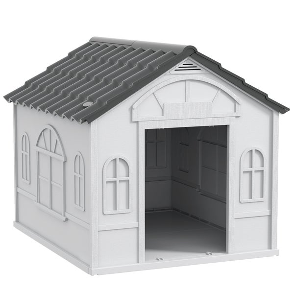 PawHut Hundehütte, Hundehaus mit Satteldach, wetterfest Kleintierhaus für mittelgroße Hunde unter 20 kg, Hundehütte Outdoor, 65 x 75,7 x 63 cm, Grau