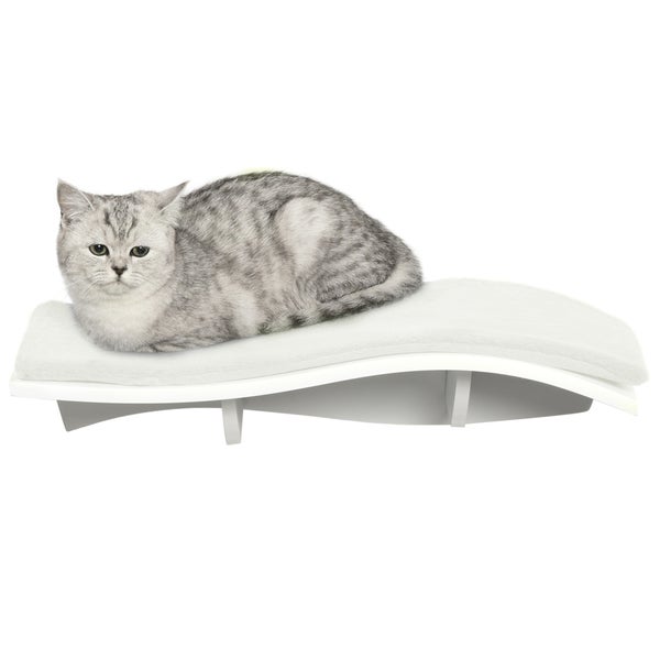 PawHut Katzen Kletterwand Katzenhängematte Katzenbett Wand Katzenregal Wandmontage Katzenmöbel Plüsch MDF Weiß 53 x 28 x 12 cm