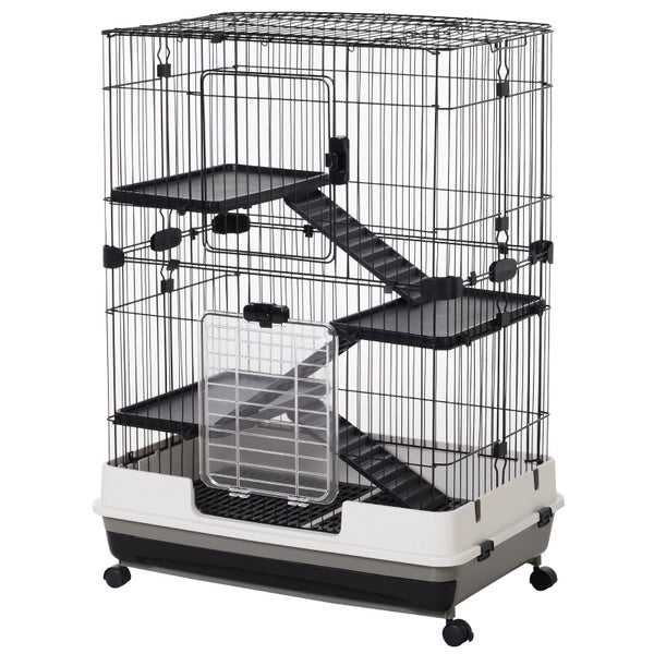 PawHut Kleintierkäfig mit 4 Räder, Käfig, 3 Öffnungen, 2 Plattformen, Metall Schwarz 81,2 x 52,7 x 110 cm