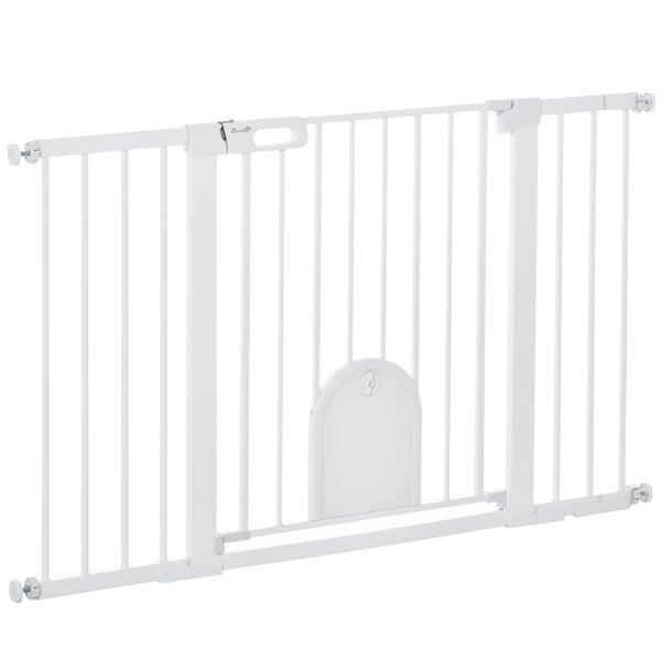 PawHut Türschutzgitter, 75-131B x 76H cm, Metall, ABS, Weiß