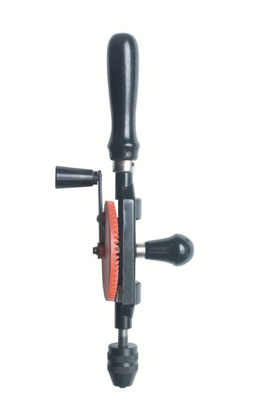 Handbohrmaschine mit Haltegriff, Doppelgetrieberahmen und zusätzlichem Halteknopf, Dreibacken.