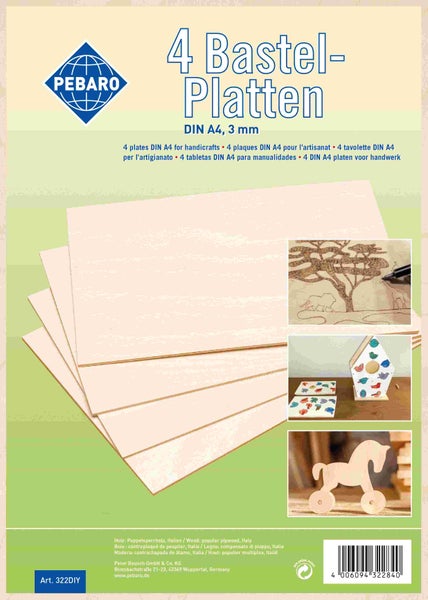 PEBARO 322DIY - 4 Sperrholzplatten DIN A 4 für Bastelarbeiten, Pappel 3 mm
