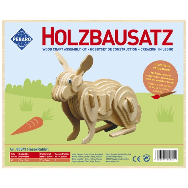 PEBARO 858/3 - Holzbausatz Hase, 43 Teile, Holzkonstruktion zum Zusammenstecken