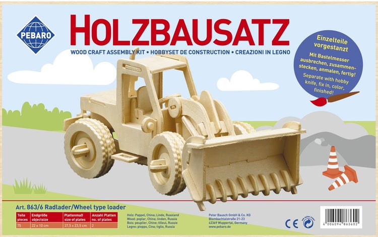 PEBARO 863/6 - Holzbausatz Radlader, 75 Teile, Holzkonstruktion zum Zusammenstecken